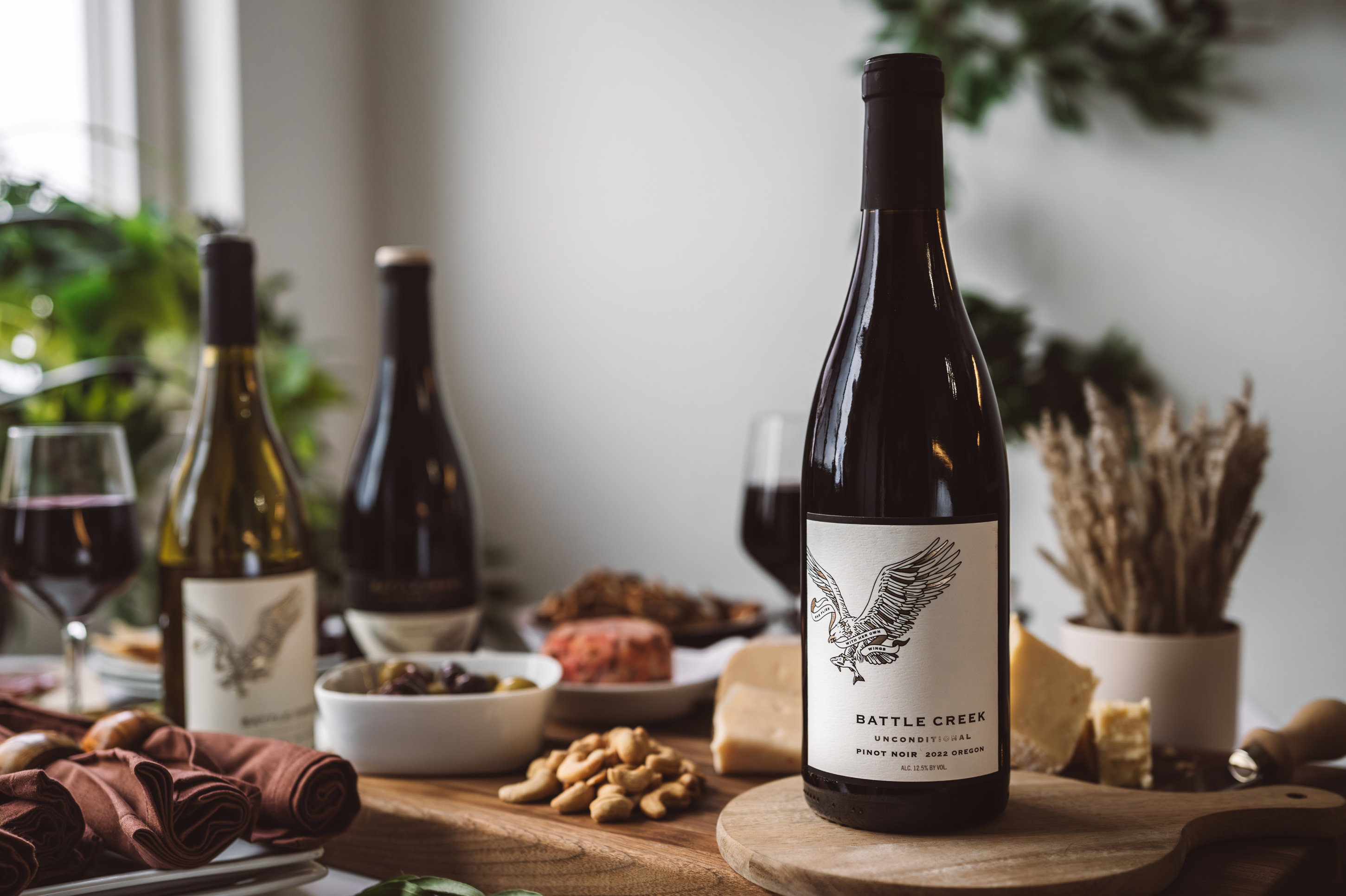 Battle Creek's Pinot comes from hand-selected vineyards across the state, including our namesake Battle Creek Vineyard. Ancient volcanic soils, cool wet winters, warm dry summers. Everything Oregon Pinot Noir should be.